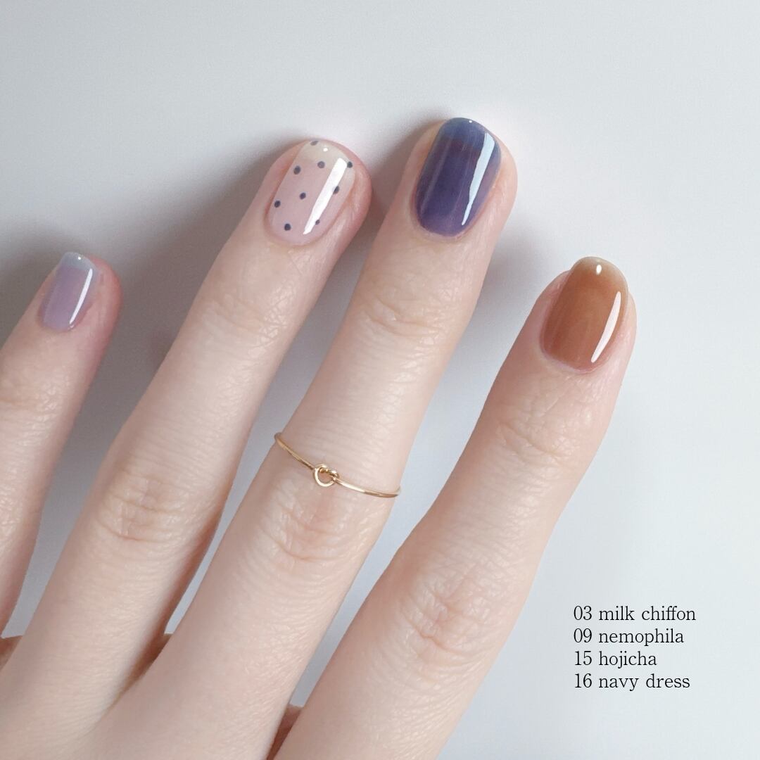 濃く出すぎないシアーな発色で、重たくなりすぎないため、指先に穏やかなニュアンスを与えてくれます。