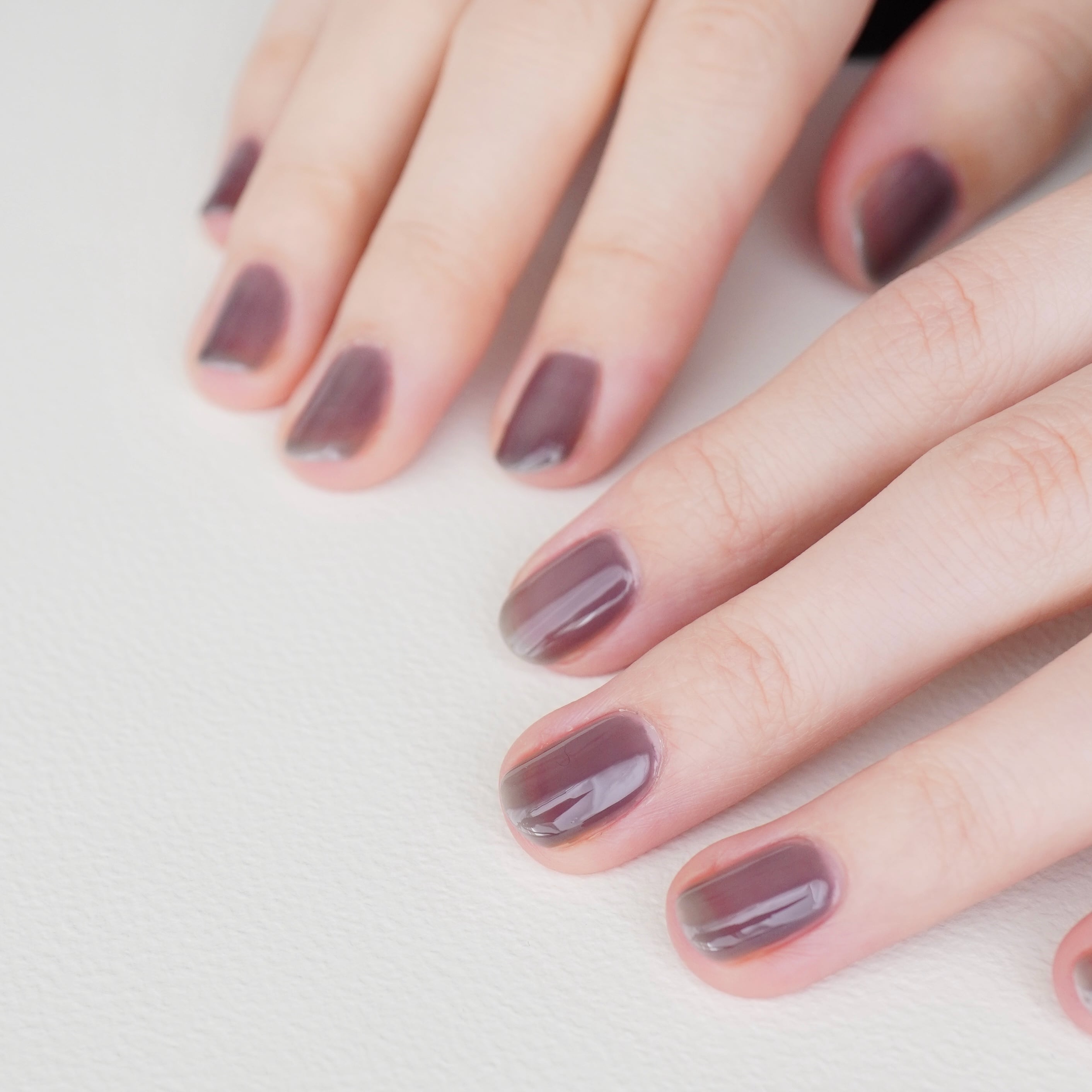名前の通り、影をイメージしたこのカラーは、他のポリッシュの下に仕込むことで、色の変化をお楽しみいただけます。1本持っているだけで、さまざまな表情が作れる万能カラーです。
